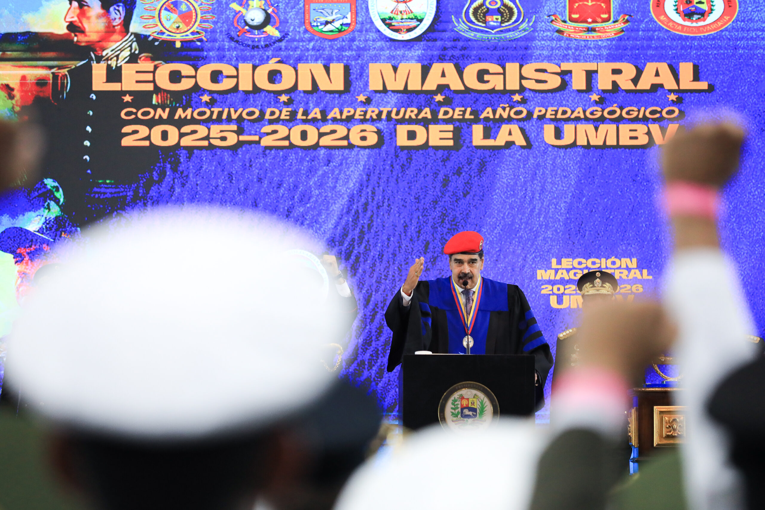 Fuerte Tiuna, Caracas.- Durante su discurso en la Universidad Militar Bolivariana de Venezuela (UMBV), con motivo de la apertura del año pedagógico 2025–2026, el presidente de la República Bolivariana de Venezuela, Nicolás Maduro Moros, informó que grandes potencias del mundo como China, Rusia, India y los gobiernos de los Brics le han dado un respaldo absoluto a Venezuela en su lucha por la paz y en contra de la agresión estadounidense.