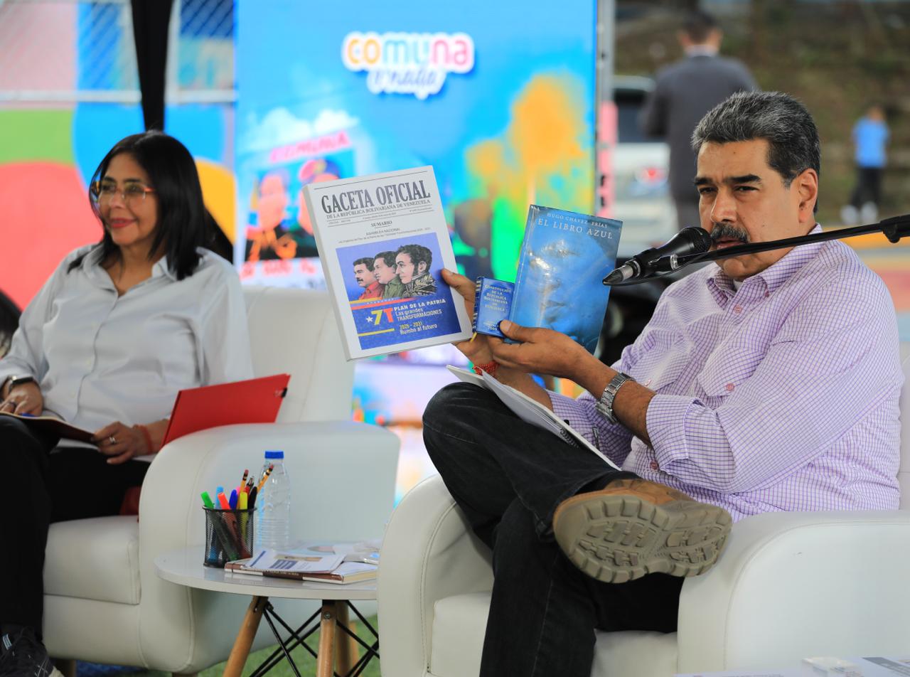 Petare, Miranda.- Desde la Comuna de Cara al Río, en el sector Brisas de Petare y acompañado del Consejo de Vicepresidentes de Gobierno, encabezado por la vicepresidenta ejecutiva, Delcy Rodríguez; la vicepresidenta sectorial de Ciencia, Tecnología, Ecosocialismo y Salud, Gabriela Jiménez Ramírez; el vicepresidente de Soberanía, Política, Seguridad y Paz, GJ Vladimir Padrino López; el vicepresidente sectorial de Planificación, Ricardo Menéndez; el vicepresidente sectorial de Obras Públicas y Servicios, y Jefe del 1×10, Mayor General Jorge Márquez; el presidente de la República Bolivariana de Venezuela, Nicolás Maduro Moros, instruyó a todo el Poder Constitucional del país ponerse al servicio del poder del pueblo para la venidera Consulta Popular Nacional del próximo 23 de noviembre.