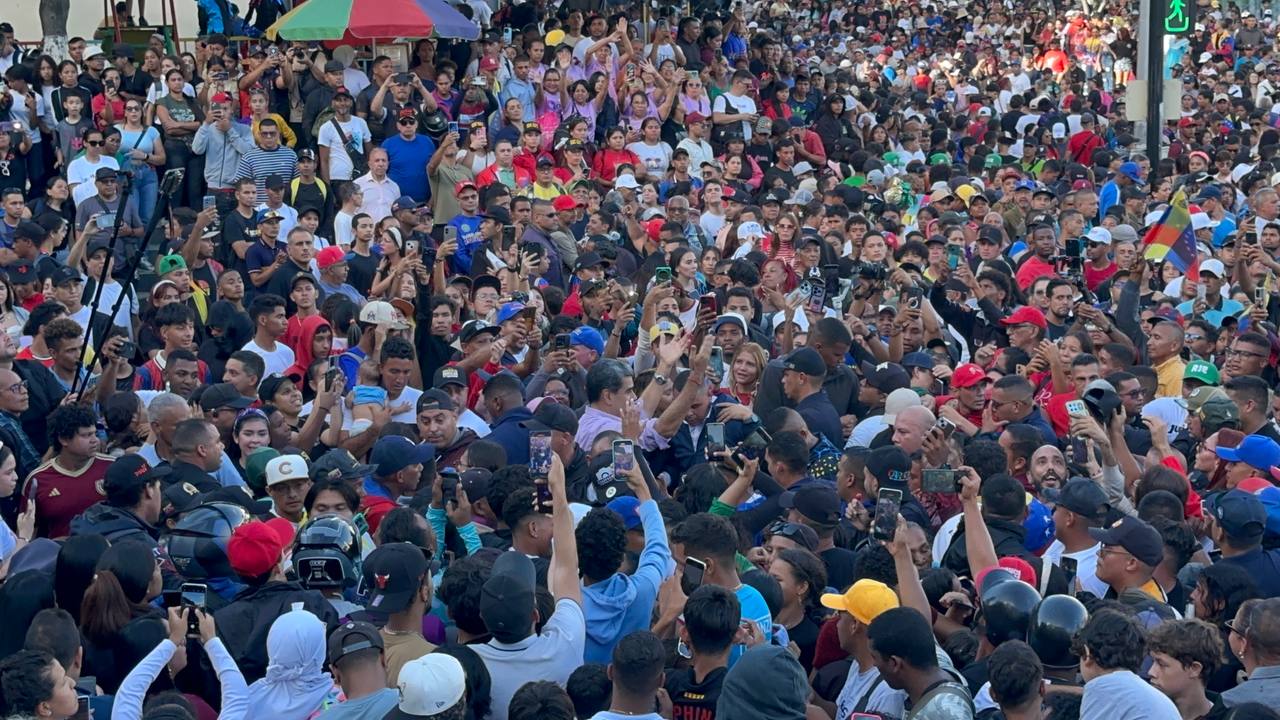El Mandatario Nacional se unió a la marcha cuando alcanzó las inmediaciones del Complejo de Miraflores, palacio presidencial y sede del Poder Ejecutivo de Venezuela.