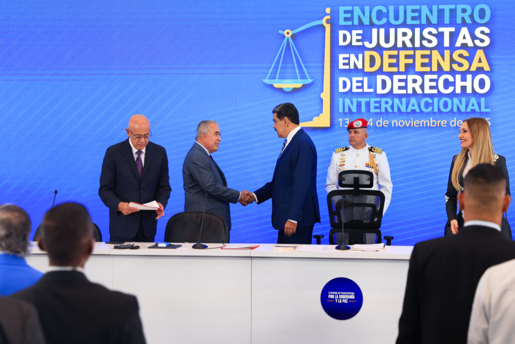 Caracas, Venezuela.- Como cierre del Encuentro de Juristas en Defensa del Derecho, celebrado en Caracas, el presidente de la República Bolivariana de Venezuela, Nicolás Maduro Moros, alzó su voz para nuevamente denunciar el genocidio de la Franja de Gaza y anunciar que no ocurrirá lo mismo en Venezuela.