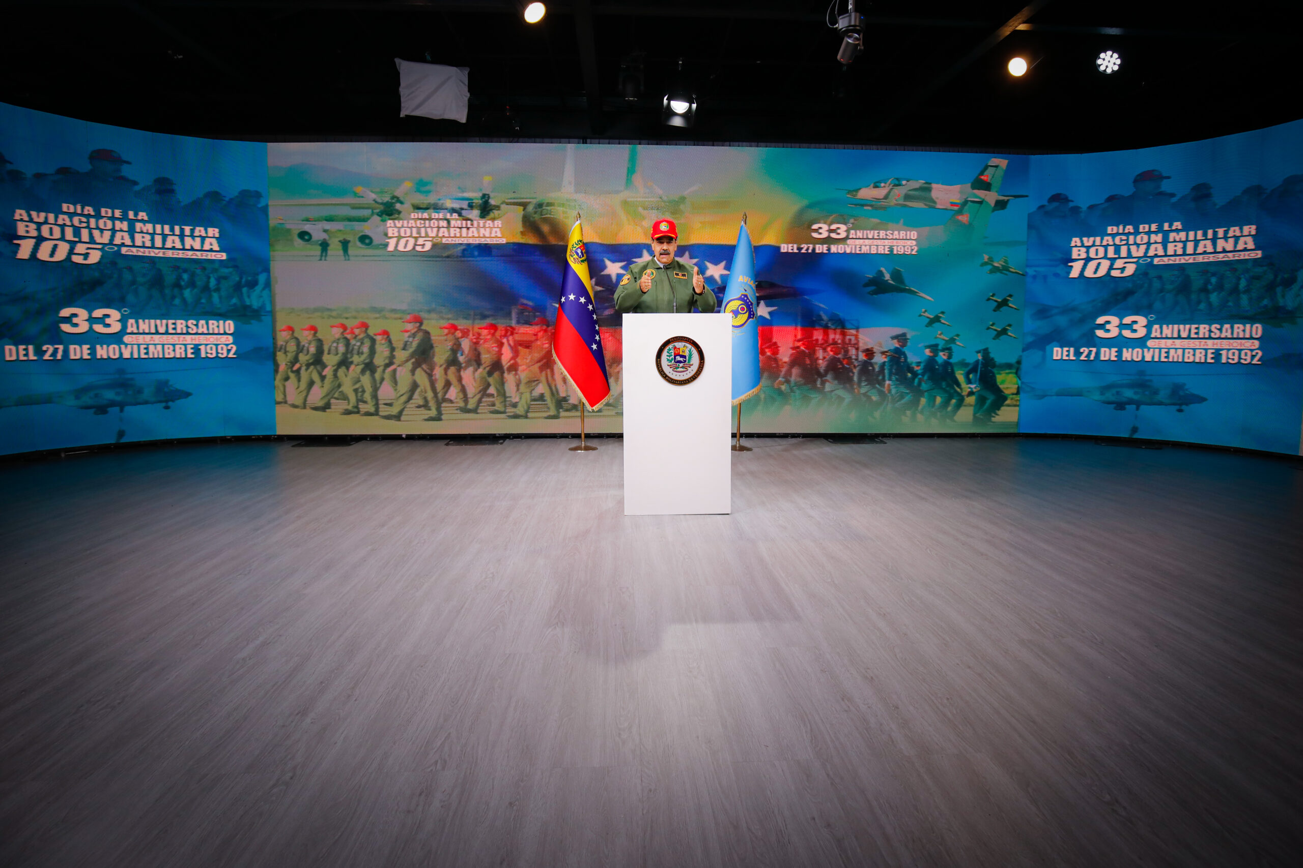 Caracas, Venezuela.- Durante una transmisión especial con motivo a los 105 años de la Aviación Militar Bolivariana y el 33° Aniversario de la Rebelión Militar del 27 de Noviembre, el presidente Nicolás Maduro Moros, destacó en cifras el compromiso patrio que tiene el pueblo venezolano ante cualquier amenaza extranjera.