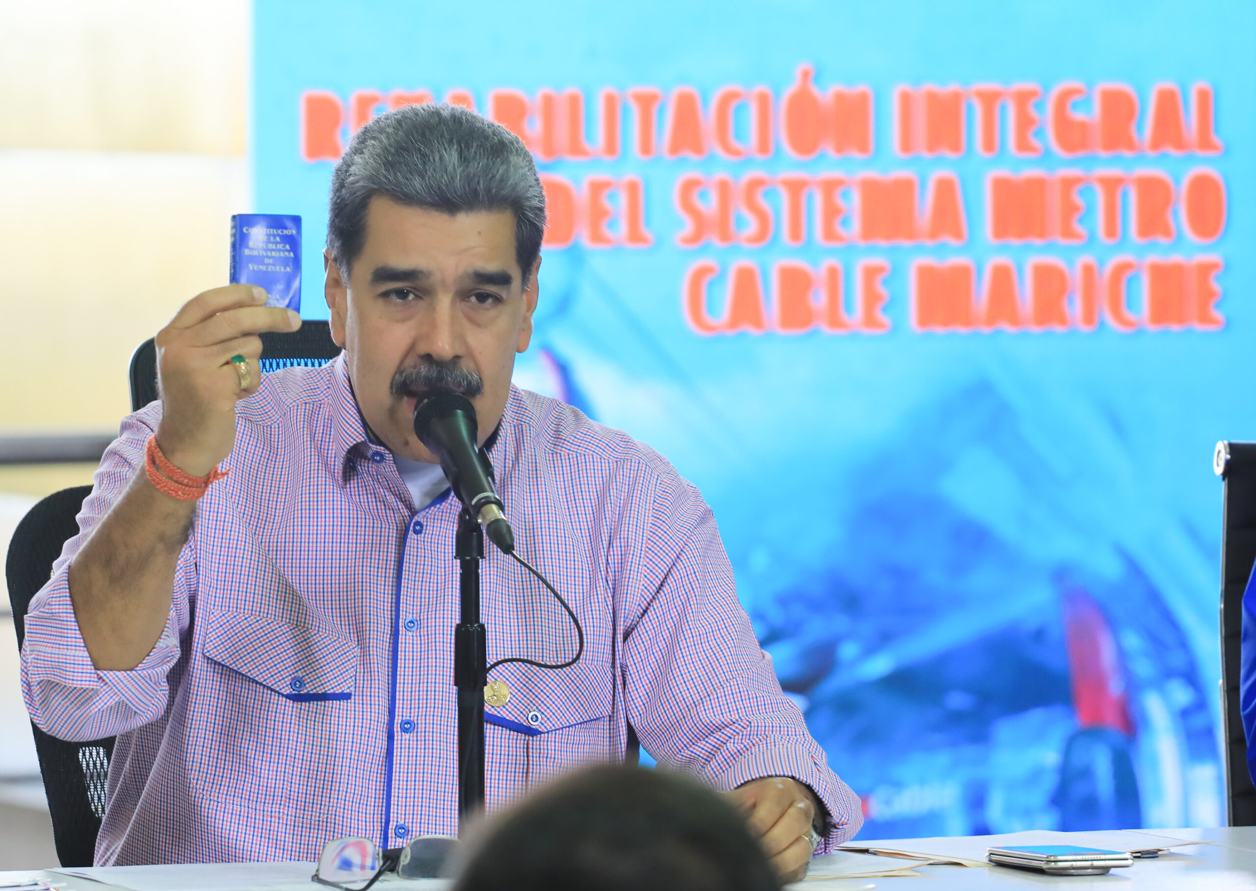 Filas de Mariche, estado Miranda.- Desde el Sistema Metro Cable Mariche, el presidente de la República Bolivariana de Venezuela, Nicolás Maduro Moros, informó que más de 2 millones constituciones de la «época del Comandante Chávez», serán impresas para ser entregadas de forma masiva al pueblo venezolano.