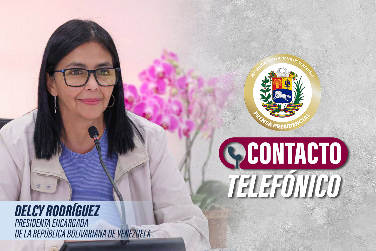Caracas, Venezuela. – Este miércoles, la presidenta encargada de la República Boliviana de Venezuela, Delcy Rodríguez, realizó un contacto telefónico con el pueblo venezolano que se mantiene en las calles y se concentró en la Gran Marcha de los Trabajadores, para exigir la liberación del presidente Nicolás Maduro y de la Primera Dama Cilia Flores.