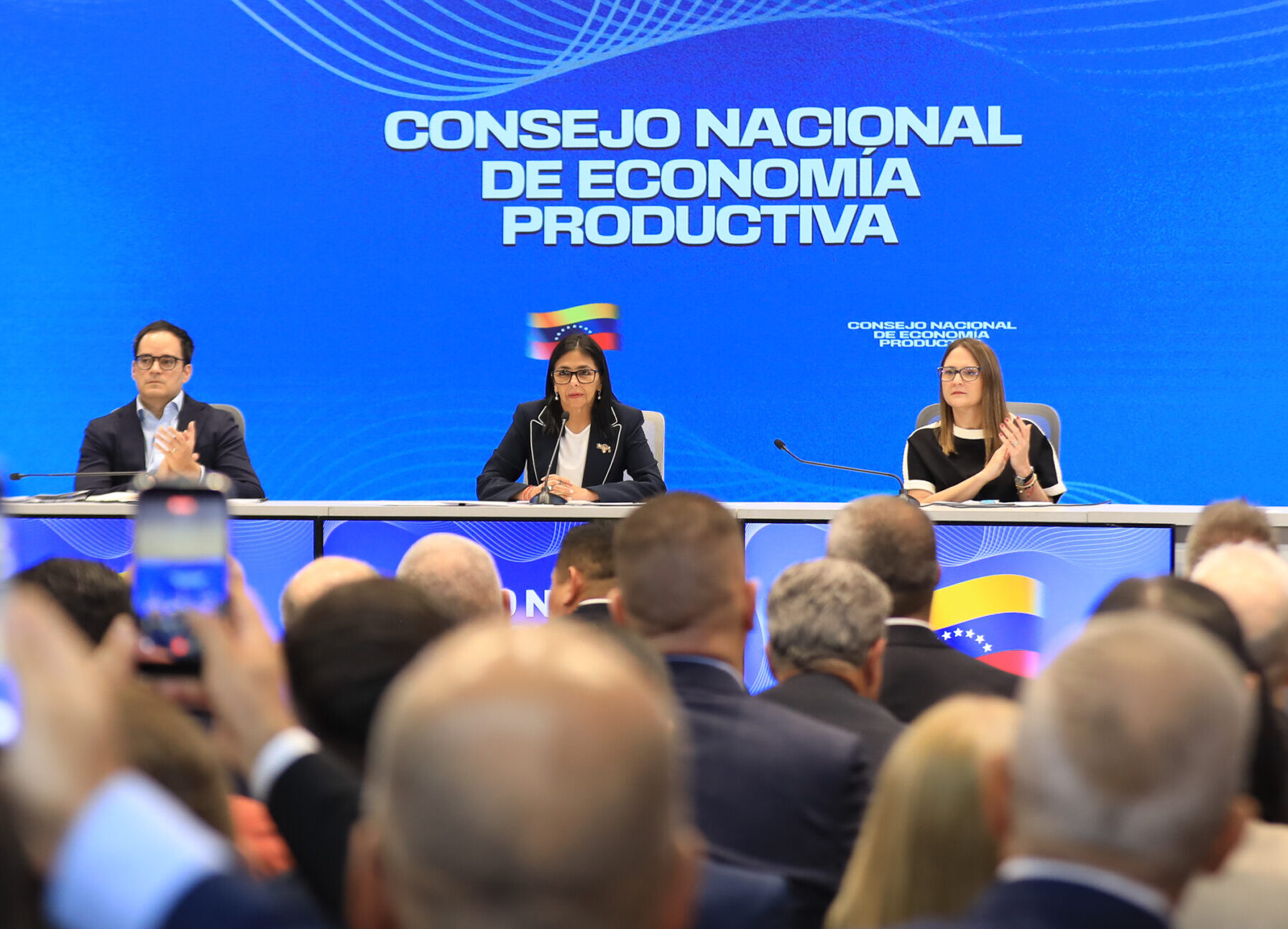 Caracas, Venezuela.- Desde el Consejo Nacional de Economía Productiva, liderado por la presidente encargada de la República Bolivariana de Venezuela, Delcy Rodríguez, acompañada del vicepresidente sectorial de Economía y Finanzas, Calixto Ortega; la Mandataria (E) se dirigió a los empresarios, inversionistas y productores agroalimentarios del país para ratificarles que el Programa de Recuperación Económica, Prosperidad y Crecimiento que presentó el Presidente Constitucional Nicolás Maduro en el año 2018, que ha permitido los avances alcanzados en la economía venezolana, se mantiene.