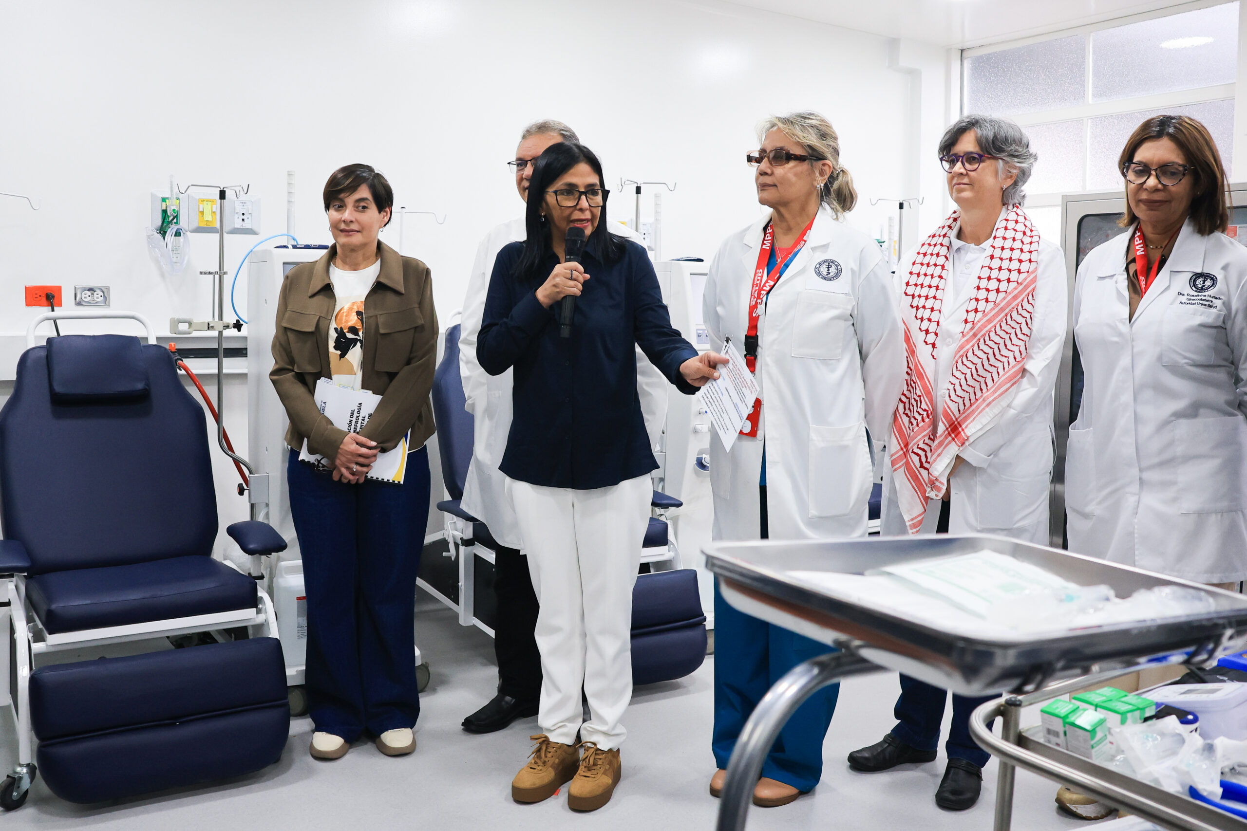Caracas, Venezuela.- Este martes 27 de enero, la presidenta encargada de la República Bolivariana de Venezuela, Delcy Rodríguez, encabeza el acto donde se activa un nuevo Servicio de Nefrología del Hospital Universitario de Caracas, una obra de 1.000 metros cuadrados rehabilitados con tecnología de punta. La mandataria encargada, acompañada por el Dr. Luis Lira Arocha, director del Hospital y la Jefa del Servicio, Dra. Anabela Arminio, recorre las nuevas instalaciones que cuentan con 11 sillones de diálisis, quirófano especializado y consultorios, con capacidad para realizar más de 5.000 sesiones mensuales de hemodiálisis.