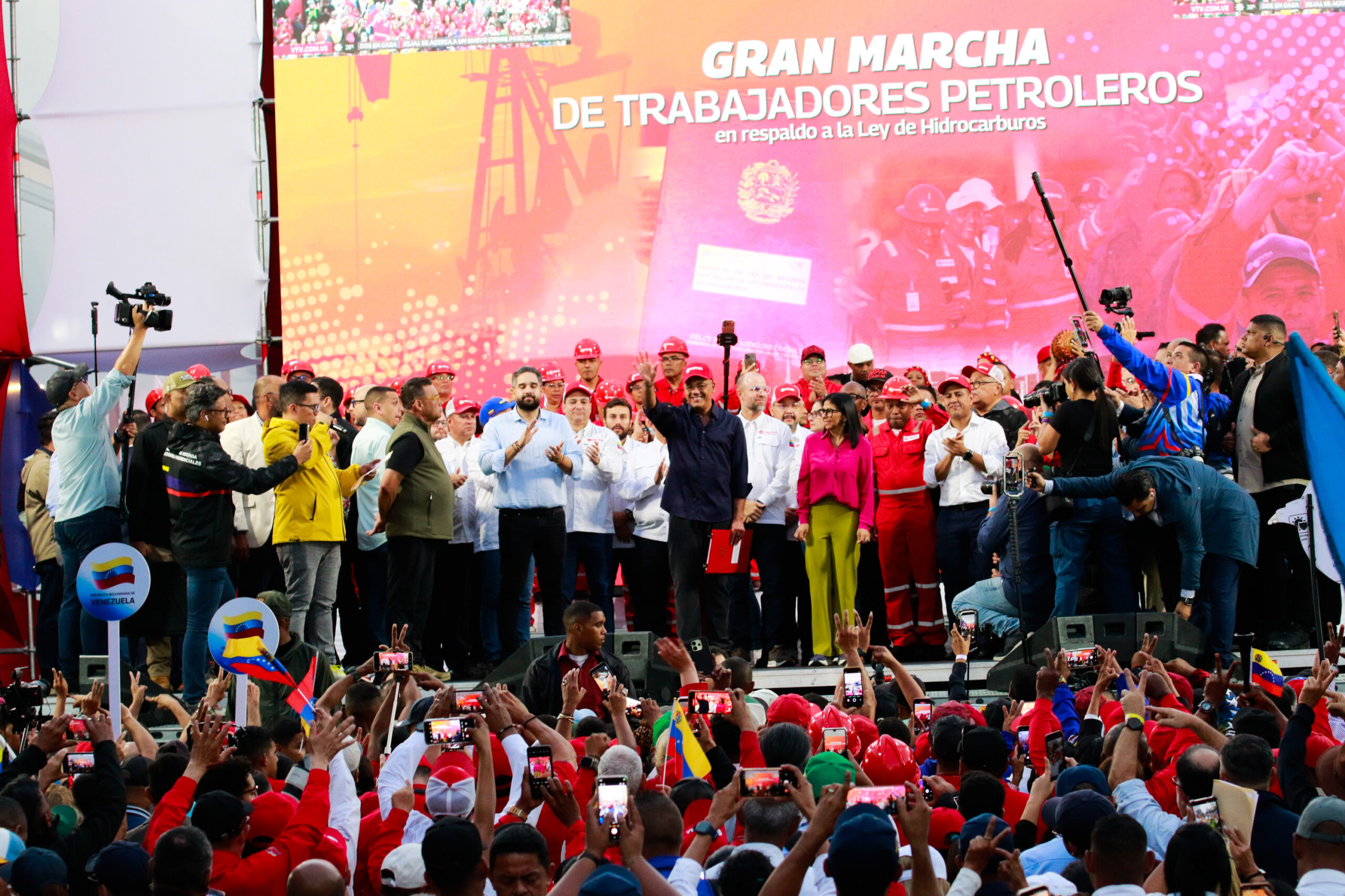 “No solamente a mi mando, que estén al mando del pueblo venezolano… para garantizar la paz, la soberanía, la integridad territorial y la defensa”, expresó la mandataria encargada, durante la Gran Marcha de la Clase Obrera en respaldo a la Ley de Hidrocarburos.