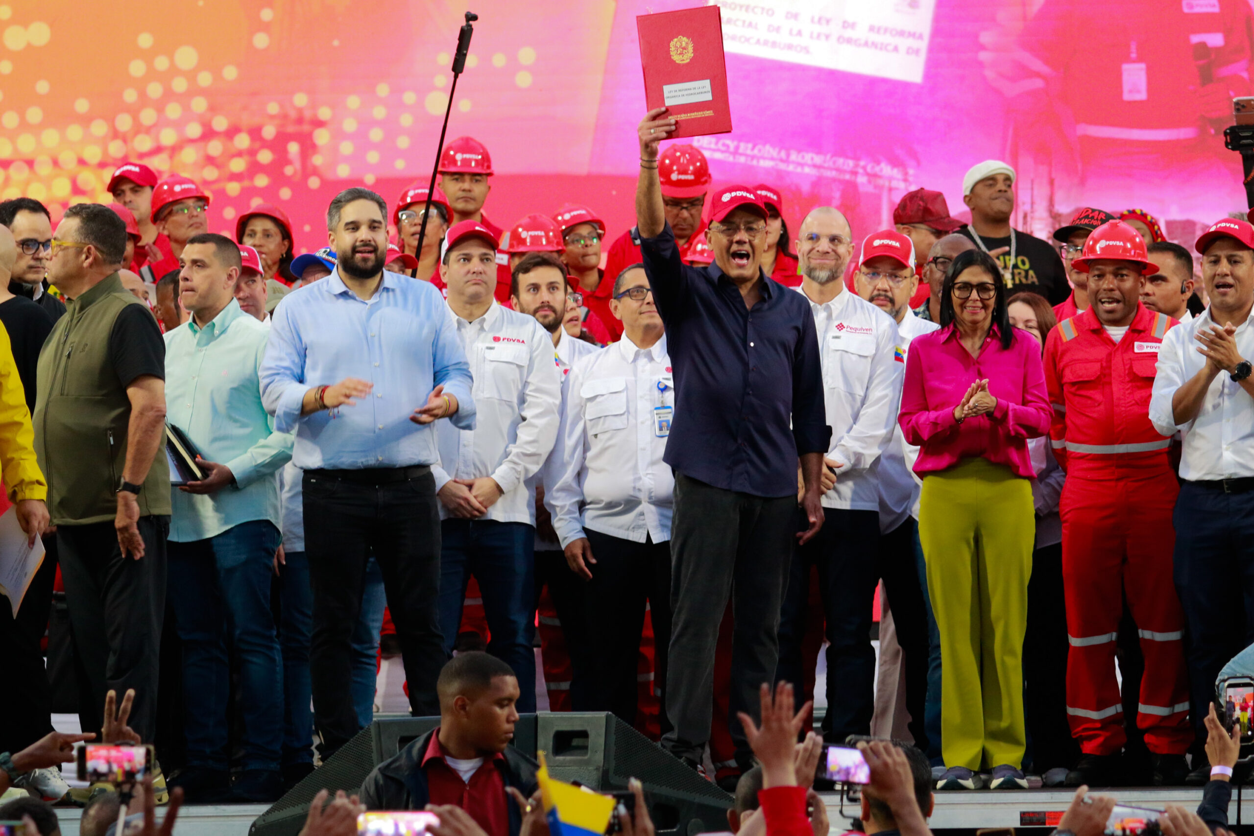Caracas, Venezuela.- Durante una movilización popular en Caracas, el diputado Jorge Rodríguez calificó a la clase obrera petrolera como la verdadera protagonista de la reforma de la Ley de Hidrocarburos. Rodríguez reconoció la valentía de los hombres y mujeres que mantuvieron operativa la industria frente a los intentos de destrucción externa, logrando cerrar el año 2025 con una producción de 1 millón 200 mil barriles diarios.