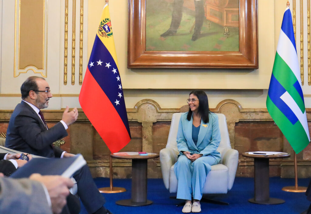 Caracas, Venezuela. – La presidenta encargada de la República Bolivariana de Venezuela, Delcy Rodríguez, se reunió este martes con autoridades del Banco de Desarrollo de América Latina y el Caribe (CAF) en el Palacio de Miraflores, en Caracas.