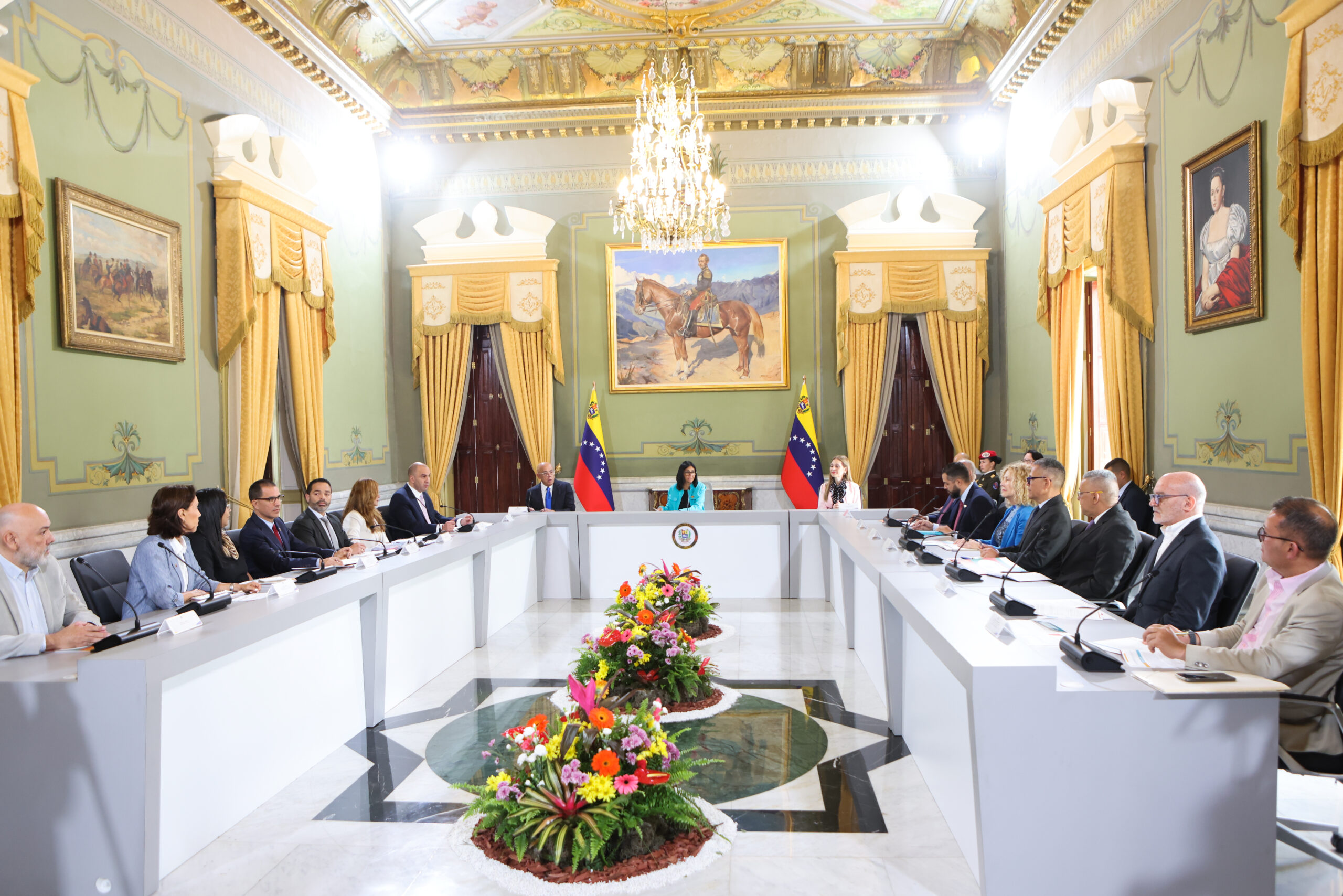 Caracas, Venezuela. – Desde el Salón Sol del Perú, del Palacio de Miraflores, la presidenta encargada de la República Bolivariana de Venezuela, Delcy Rodríguez, lideró el acto de instalación de la Comisión para la Gran Consulta Nacional sobre la Reforma de la Justicia Penal.