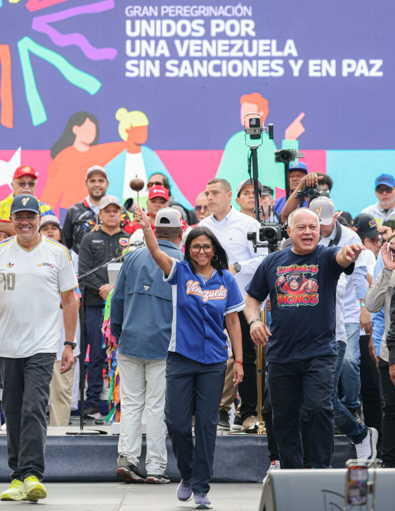 Caracas, Venezuela. – Este jueves, en una movilización que recorrió los puntos estratégicos de la capital, la presidenta encargada de la República Bolivariana de Venezuela, Delcy Rodríguez, encabezó el cierre de la Gran Peregrinación Nacional, una iniciativa que ha congregado a diversos sectores de la sociedad venezolana, bajo la consigna unificada de una «Venezuela sin Sanciones y en Paz».
